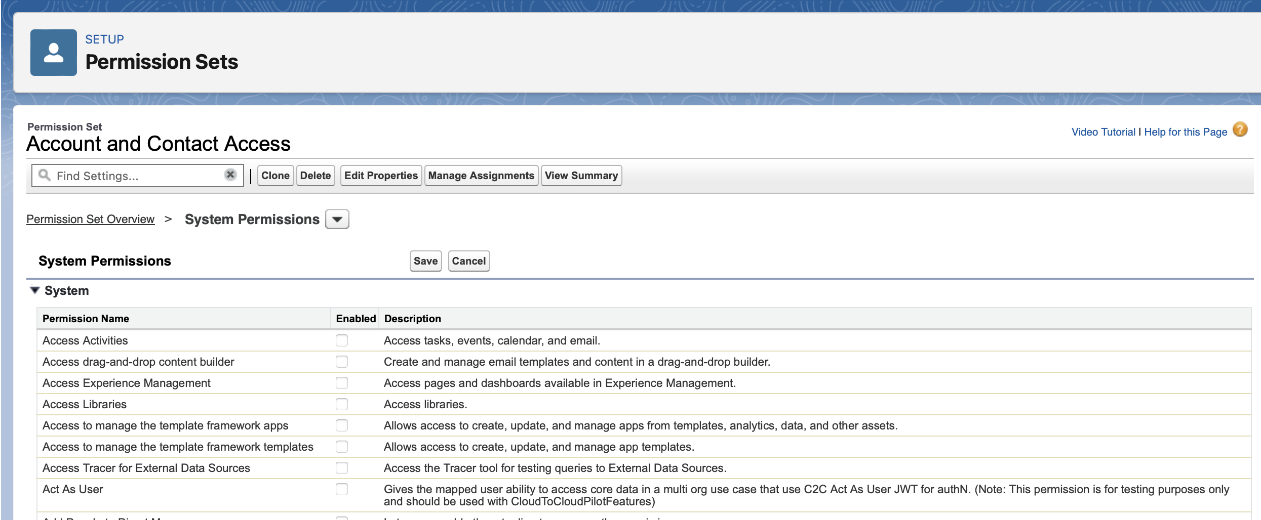 Read,View All Records, andView All Fieldsare checked. - If the integration needs to write data, ensure that all boxes are checked.